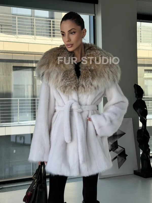 Мех данной шубы аукционная норка, цвет белый. Предлагается в размерах от 42 до 50. Длина модели 75-80 см, что выгодно подчеркивает фигуру девушек. Эта модель идеально подойдет для девушек и женщин, предпочитающих роскошные натуральные меха.