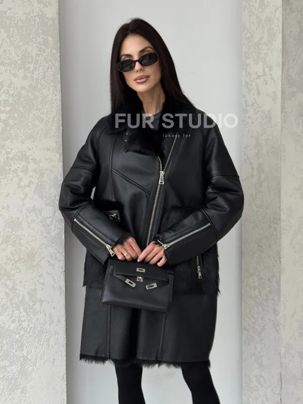 Черная дубленка на тоскане 100740