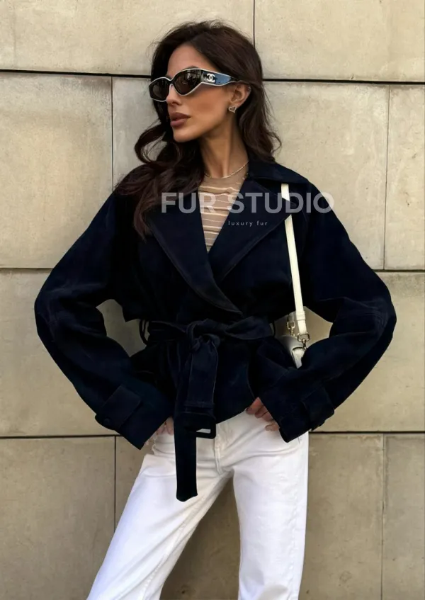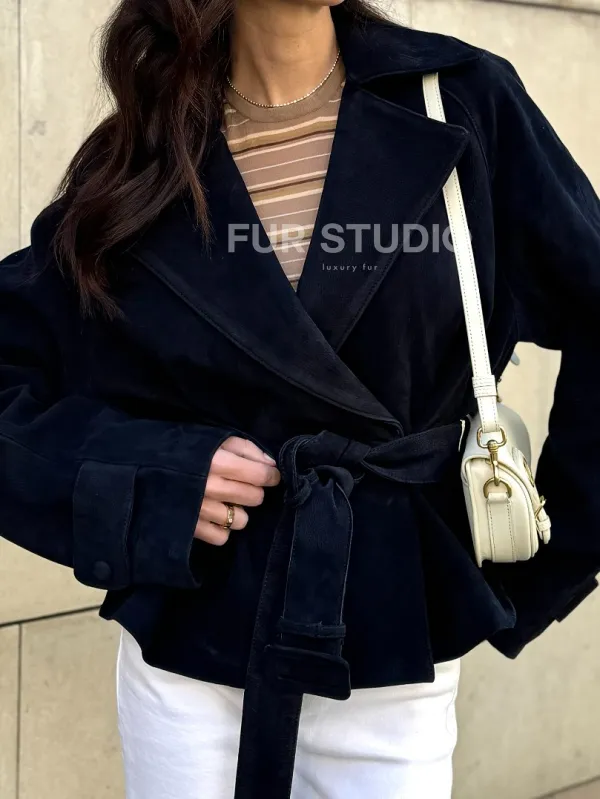 Модная куртка из замшевой кожи доступна для покупки в нашем шоуруме Furs Studio в , где также предоставляется удобная доставка во все города России.