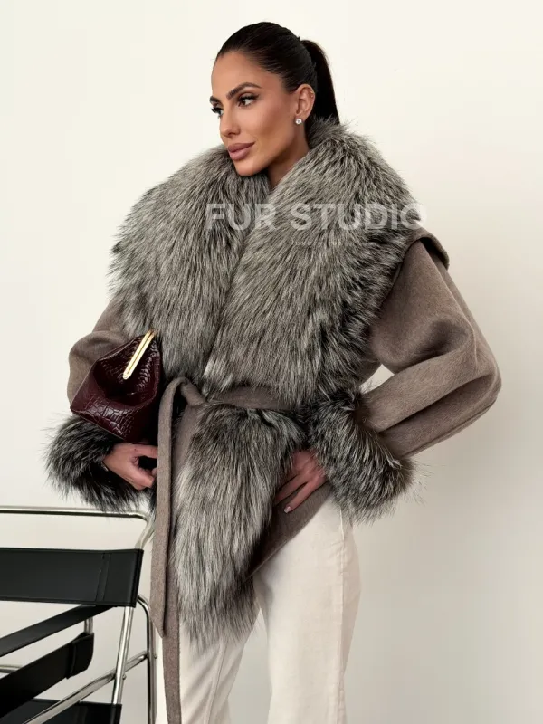 Полупальто с мехом чернобурки 102616