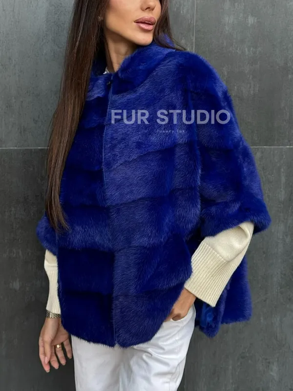 Мех данной шубы аукционная норка , цвет синий. Предлагается в размерах от 40 до 48 (oversize). Длина модели 60-65 см, что выгодно подчеркивает фигуру девушек. Эта модель идеально подойдет для девушек и женщин, предпочитающих роскошные натуральные меха.
