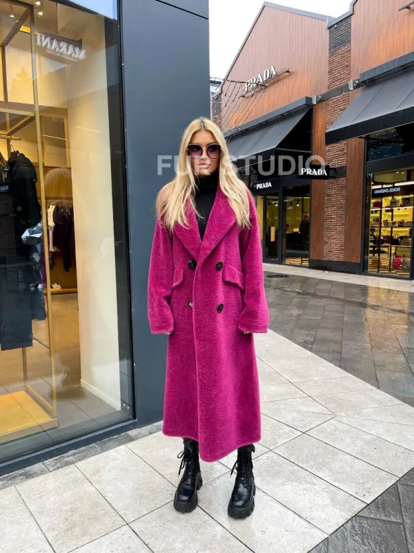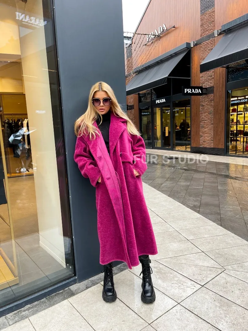 Современная шуба из натуральной шерсти отличная альтернатива для модниц, у которых бюджет ограничен. Яркий цвет подчеркивает индивидуальность владелицы и делает акцент на оттенке волос и глаз хозяйки. Длина позволяет носить короткие наряды, что очень актуально для любительниц мини в холодное время года. Широкие карманы позаботятся о тепле ручек. Прямой крой зрительно удлинит силуэт и скроет недостатки фигуры.