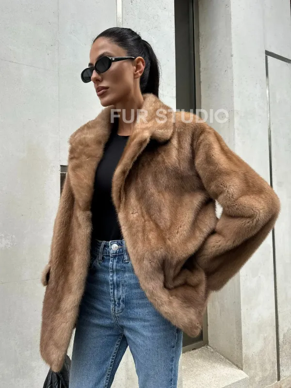 Женский норковый жакет в песочном цвете 100949